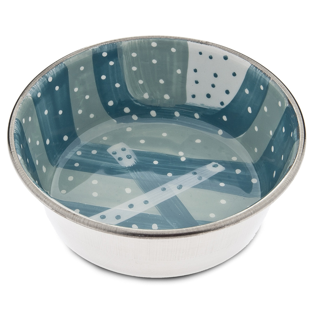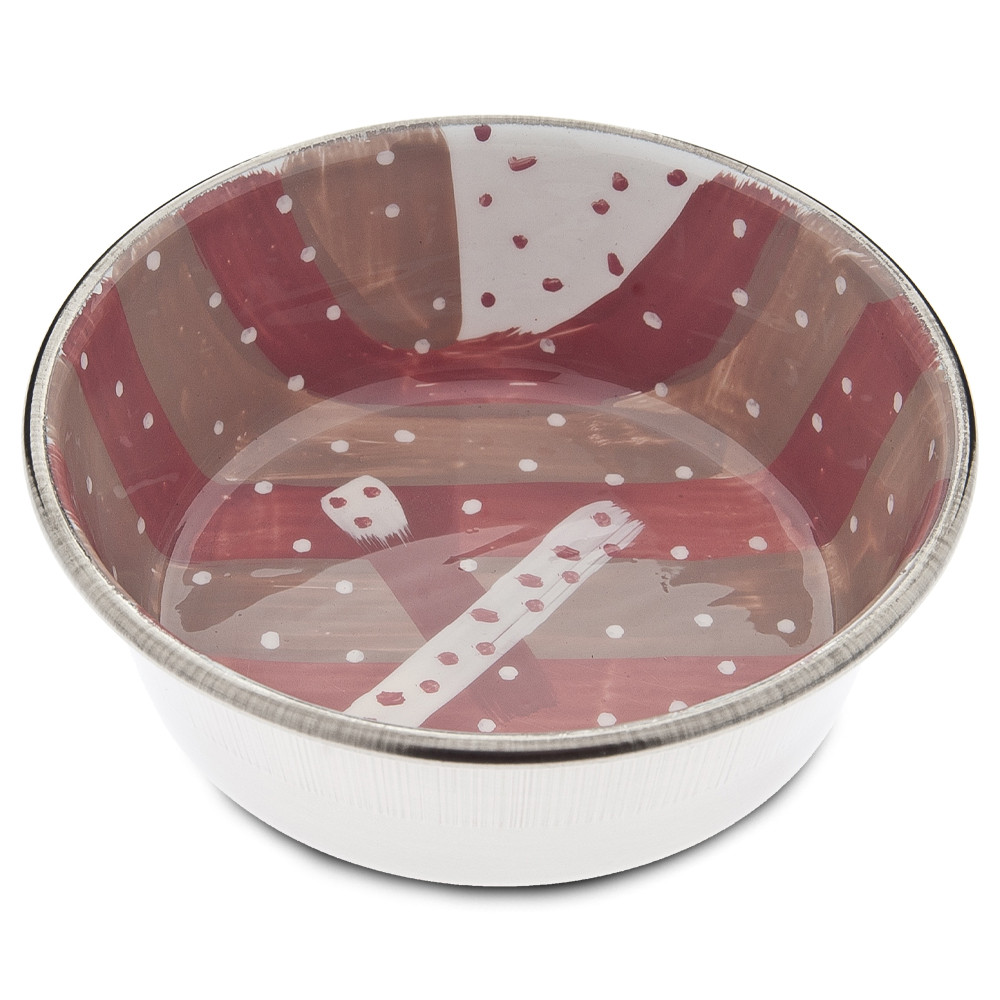 A tigela Artista é adequada para colocar alimentação seca ou húmida e, também, água, para cães. Feita de aço inoxidável e pintada à mão.